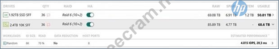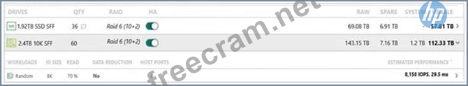 The exhibit shows various configurations for expanding an HPE Primera C6S0 array. The customer is planning to upgrade the system as older 3PAR arrays come off lease. Since the next 3PAR system to be replaced holds 100TB of VDI boot images for thousands of users, the recommended addition to the Primera array should focus on providing the necessary performance and capacity for VDI workloads.