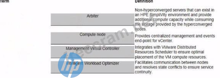 Match HPE SimpliVity team with the definition.