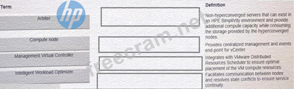 Here are the correct matches for each HPE SimpliVity term with their respective definitions: