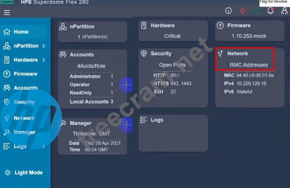 Click the appropriate section in the HPE Superdome Flex 280 management interface that will allow you to complete this task.