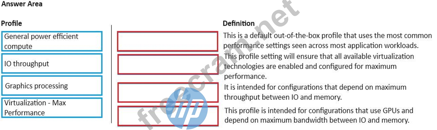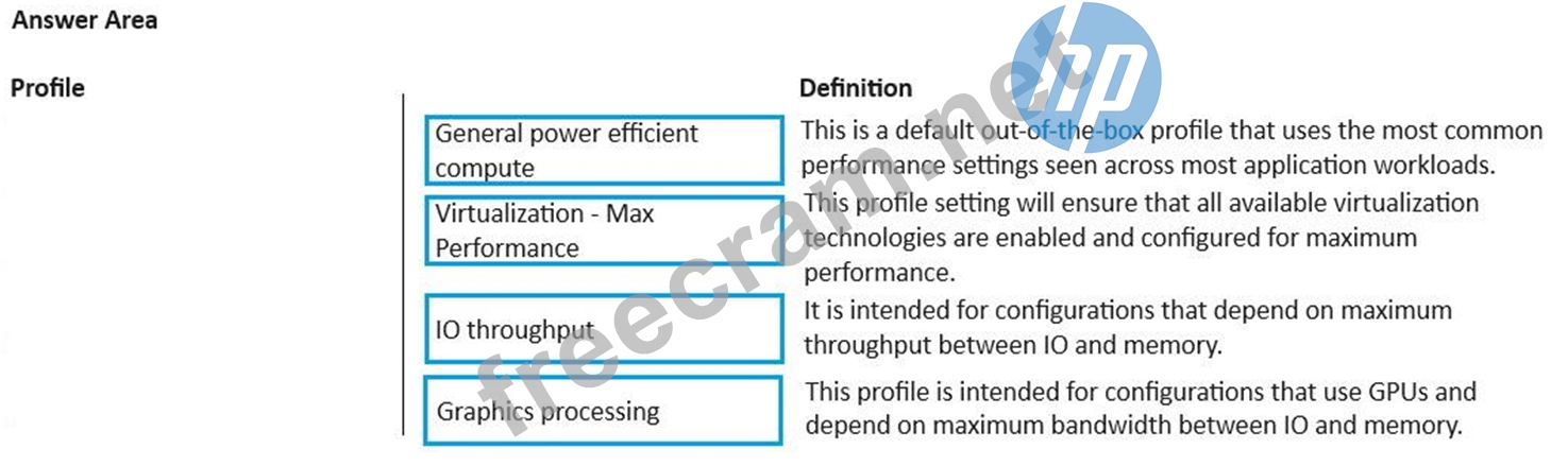 Match the preconfigured HPE workload profile with its definition.