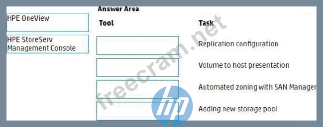 For HPE Primera, match each task with the management tool that can be used to perform it.