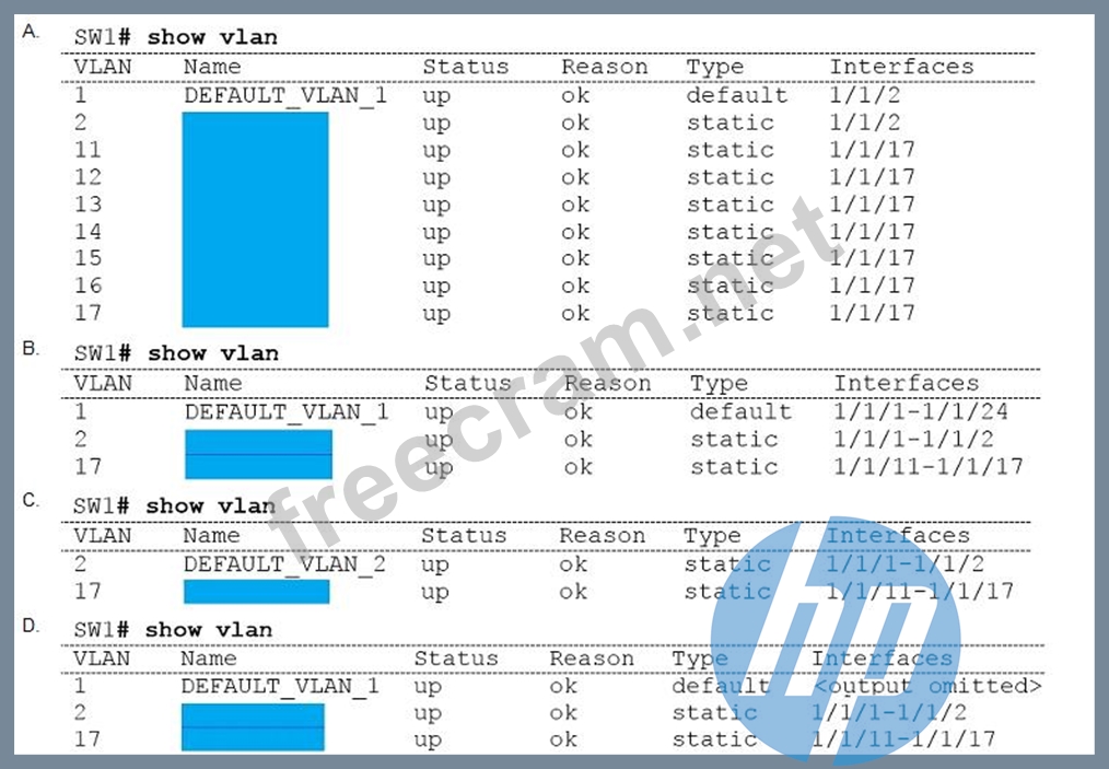 SW1(config-if-<1/1/11-1/1/17)# vlan access 17