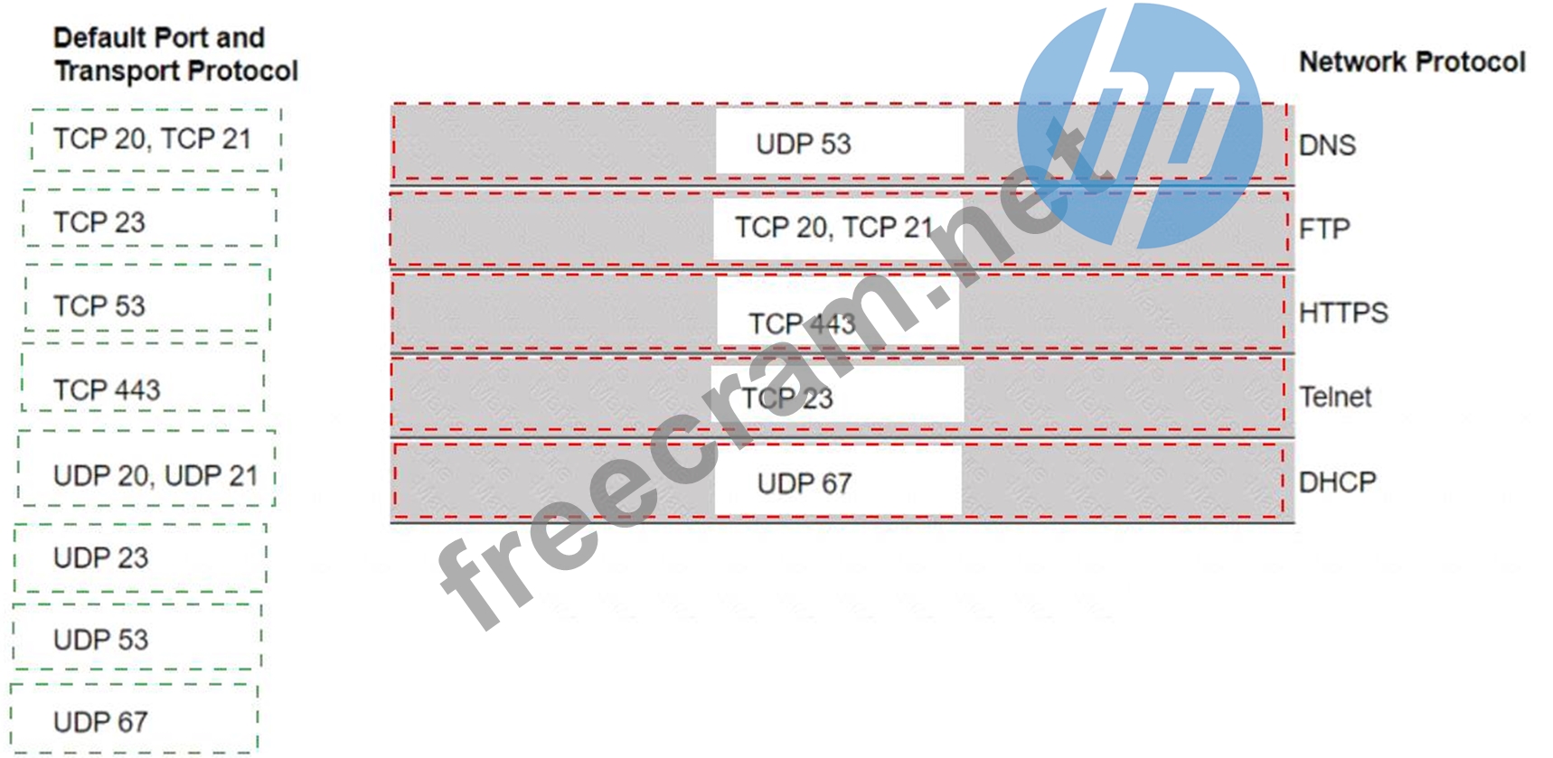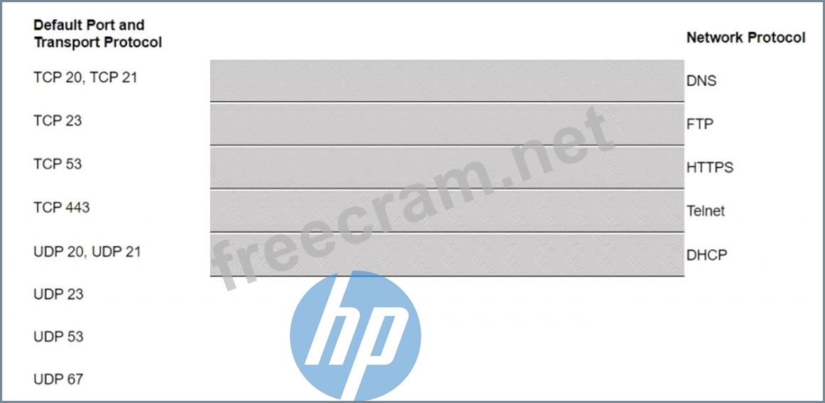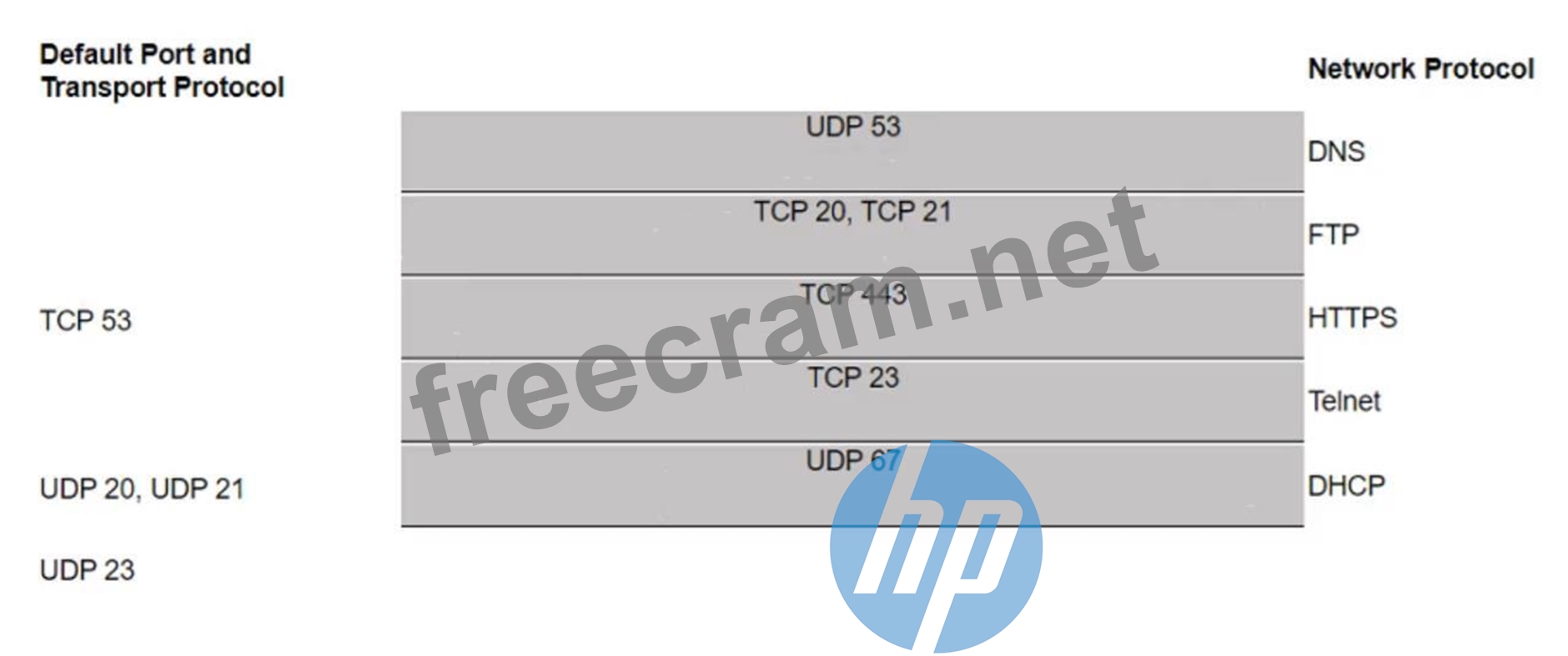 Match each network protocol to the current default listening port and transport protocol. Not all answer will be used.