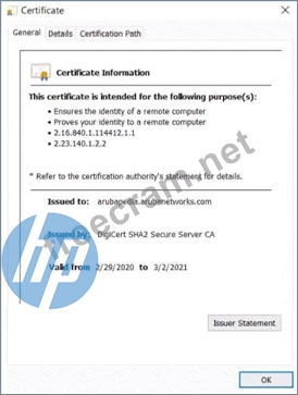 Refer to the exhibit. Device A is establishing an HTTPS session with the Arubapedia web sue using Chrome. The Arubapedia web server sends the certificate shown in the exhibit What does the browser do as part of vacating the web server certificate?
