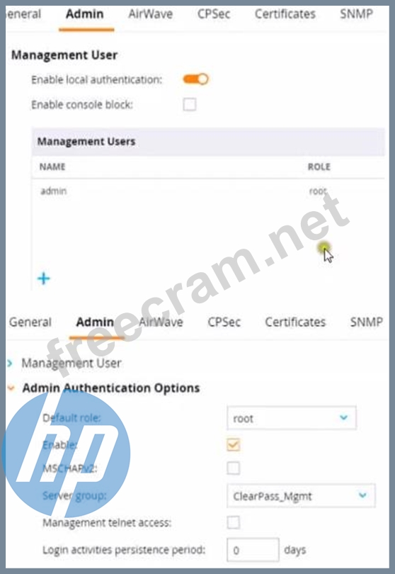 Refer to the exhibit. This Aruba Mobility Controller (MC) should authenticate managers who access the Web Ul to ClearPass Policy Manager (CPPM) ClearPass admins have asked you to use RADIUS and explained that the MC should accept managers' roles in Aruba-Admin-Role VSAs Which setting should you change to follow Aruba best security practices?
