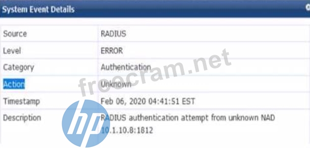 Refer to the exhibit. You are deploying a new ArubaOS Mobility Controller (MC), which is enforcing authentication to Aruba ClearPass Policy Manager (CPPM). The authentication is not working correctly, and you find the error shown In the exhibit in the CPPM Event Viewer. What should you check?