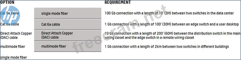 Match the most cost-effective option for cabling each requirement. (All lengths indicate total cable length including patch cable(s), service loops, etc. where used.)