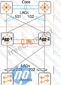 Explanation The reason is that the linkup delay timer is a feature that delays bringing downstream VSX links up, following a VSX device reboot or an ISL flap. The linkup delay timer has two phases: initial synchronization phase and link-up delay phase. The initial synchronization phase is the download phase where the rebooted node learns all the LACP+MAC+ARP+STP database entries from its VSX peer through ISLP. The initial synchronization timer, which is not configurable, is the required time to download the database information from the peer. The link-up delay phase is the duration for installing the downloaded entries to the ASIC, establishing router adjacencies with core nodes and learning upstream routes. The link-up delay timer default value is 180 seconds. Depending on the network size, ARP/routing tables size, you might be required to set the timer to a higher value (maximum 600 seconds). When both VSX devices reboot, the link-up delay timer is not used. Therefore, by configuring the linkup delay timer to include LAGs 101 and 102, which are part of the same VSX device as LAG 201, you can ensure that both devices have enough time to synchronize their databases and form routing adjacencies before bringing down their downstream links.