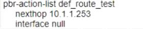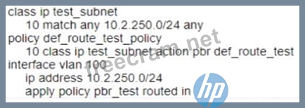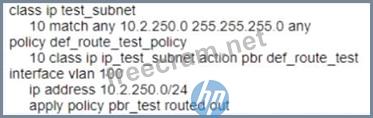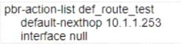 You are configuring Policy Based Routing (PBR) for a subnet that will be used to test a new default route for your network Traffic originating from 10.2.250.0/24 should use a new default route to 10.1.1.253. Other non-default routes for this subnet should not be affected by this change.