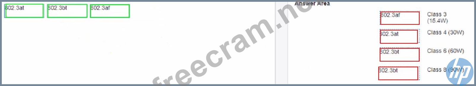 Match each PoE power class to Its corresponding 802.3 standard. (Options may he used more than once or not at all)
