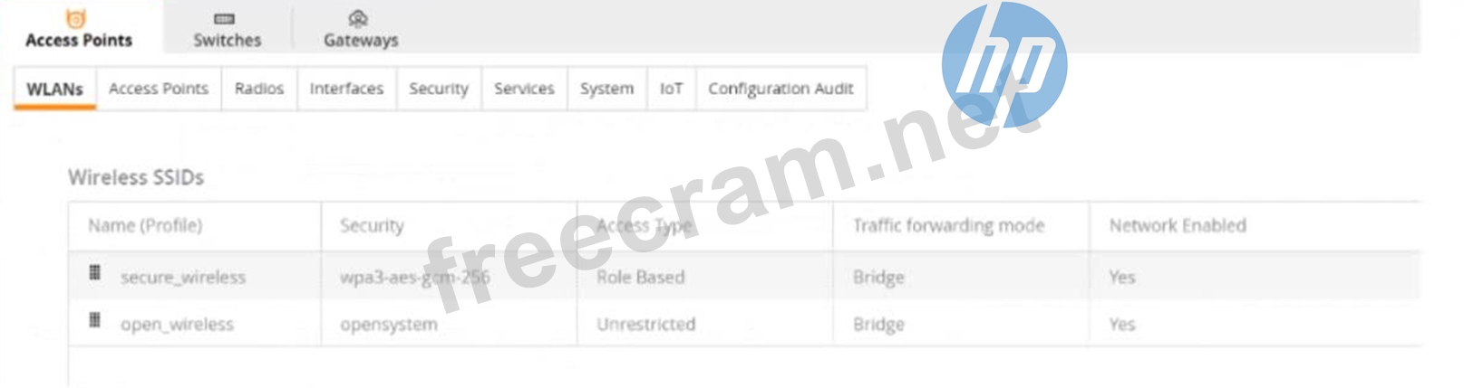 According to the Aruba Campus Access Professional documents1, WPA3-Enterprise is a security mode that supports 802.1X authentication and encryption with either AES-CCM or AES-GCMP. WPA3-Enterprise also optionally adds usage of Suite-B 192-bit minimum-level security suite that is aligned with Commercial National Security Algorithm (CNSA) for enterprise networks2. This mode provides the highest level of security and is suitable for government and financial institutions. The exhibit shows that the SSID is configured with WPA3-Enterprise (CCM), which uses AES-CCM as the encryption protocol. However, this mode is not compatible with some devices that require CNSA compliance. Therefore, changing the SSID to WPA3-Enterprise (CNSA) would fix the issue and allow all devices to connect to the network.