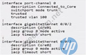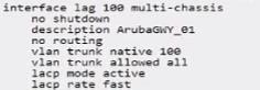 A campus topology uses VSXwith a collapsed core topology.The customer added redundant SFP+ transceivers and reconfigured their mobility gateways from a single link to an aggregate Link.You are asked to verify the CLI output for the link aggregation configuration for one of the mobility gateway cluster members below. What is a valid configuration?