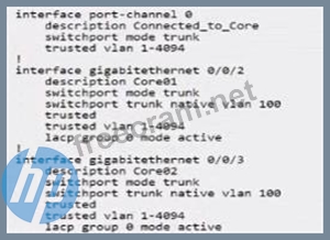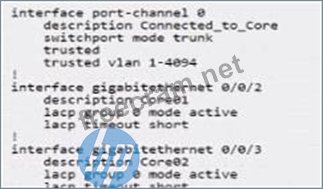 The configuration shown in Option A is a valid configuration for a multi-chassis link aggregation (MC-LAG) setup. It specifies the use of LACP (Link Aggregation Control Protocol) with a fast rate of LACP PDUs exchange, which is appropriate for creating a resilient and high-throughput link aggregation. The 'vlan trunk allowed all' command allows all VLANs across the trunk, and 'vlan trunk native 100' sets VLAN 100 as the native VLAN for untagged traffic.