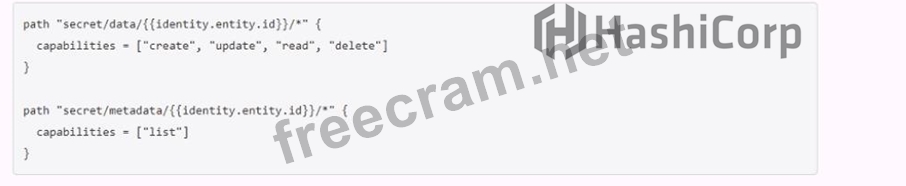 The "secret/data/{identity.entity.id}" path is where the user can store and retrieve data that is related to the secret endpoint identity. For example, the user can store some configuration or preferences for the secret endpoint identity in this path. The "secret/metadata/{identity.entity.id}" path is where the user can list the metadata of the data stored in the "secret/data/{identity.entity.id}" path. For example, the user can list the version, creation time, deletion time, and destroy time of the data in this path.