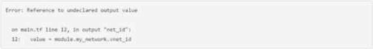 This is what you must do to successfully retrieve this value from your networking module, as it will expose the attribute as an output value that can be referenced by other modules or resources. The error message indicates that the networking module does not have an output value named vnet_id, which causes the reference to fail.