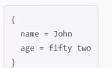 In Terraform HCL, an object type of object({name=string, age-number}) would match this value.