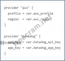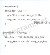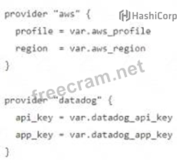 You ate creating a Terraform configuration which needs to make use of multiple providers, one for AWS and one for Datadog. Which of the following provider blocks would allow you to do this?