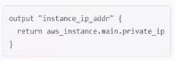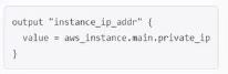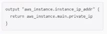 You are writing a child Terraform module that provisions an AWS instance. You want to reference the IP address returned by the child module in the root configuration. You name the instance resource "main'.