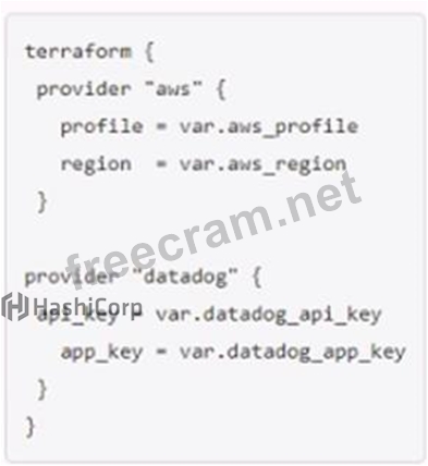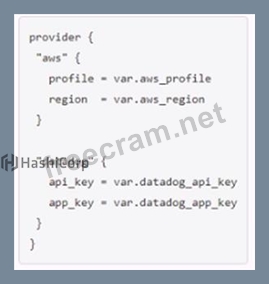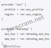 You ate creating a Terraform configuration which needs to make use of multiple providers, one for AWS and one for Datadog. Which of the following provider blocks would allow you to do this?