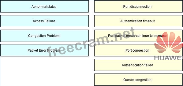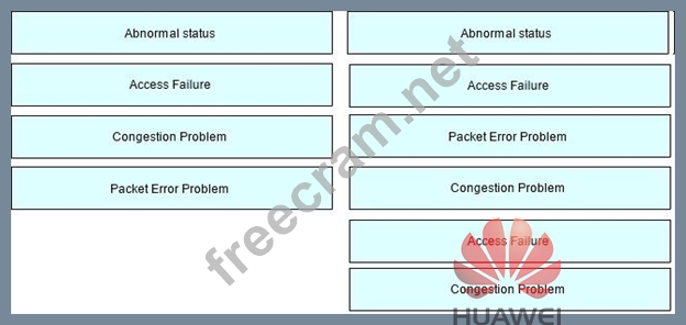 CampusInsight service topology function mainly counts four types of problems: abnormal state, access failure, congestion and packet error. Please match the following specific problems with the problem categories.