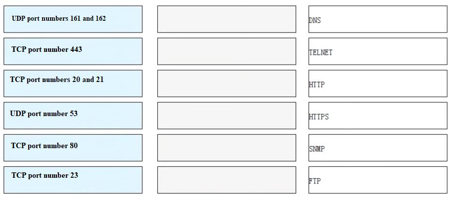 Match each of the following application layer service protocols with the correct transport layer protocols and port numbers.