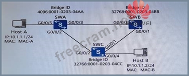 As shown in the network below, all switches enable STP protocol. Disable SWA's G0/0/2 port configuration BPDU sending function, SWC G0/0/1 re-converges to become the root port, about this process, which of the following statements are correct? (Multiple Choice)