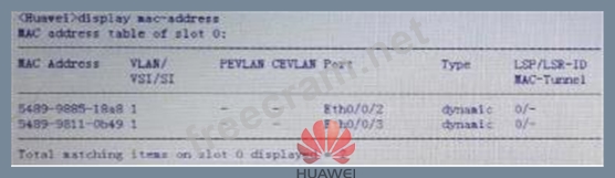 The MAC address table of a certain switch is shown in the figure. If the switch receives a data frame with a destination MAC of 5489-9811-0b49 from port Eth0/0/2, which of the following statements is correct? ()