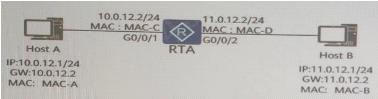 In the network shown in the figure below, the host has an ARP cache, and host A sends a packet to host B.