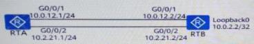 The network shown in the figure below. The administrator wants RTA to use a static router. Priority is given to sending data packets to RTB's LoopbackO interface through G0/0/1 port. At the same time, G0/0/2 is used as a backup. Then any configuration on RTA can be Realize this requirement? () (Single-choice question)