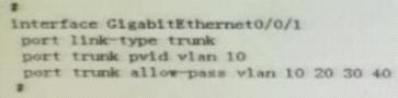 The switch GE0/0/1 port configuration information is shown in the figure. Which VLAN data frame does the switch not carry when forwarding?()