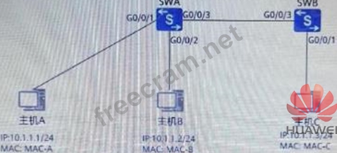 As shown in the figure below, all hosts can communicate normally. Is the correspondence between the MAC address and the port in the MAC address table of SWB correct? () (Single-choice question)