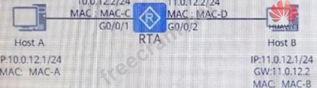 The network shown in the figure below. Host A is not configured with a gateway, and Host B has the ARP cache of the gateway. Which of the following statements are correct? () (Multiple Choice Question) The answer describes the address wrong