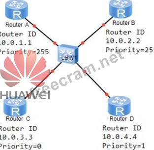 As shown in the figure. When the router uses the 0#PF protocol at the same time. Which BDR is in this network? () (Single-choice question)