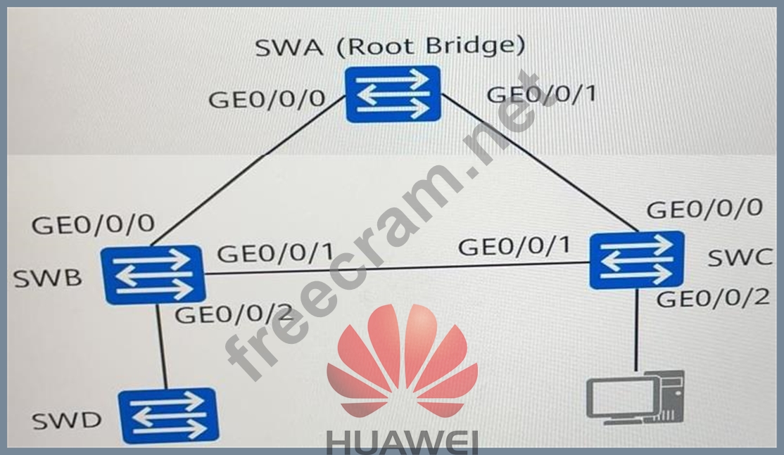 As shown in the figure, SWA, SWB, SWC, and SWD run the Rapid Spanning Tree Protocol (RSTP). Which of the following statements are true?