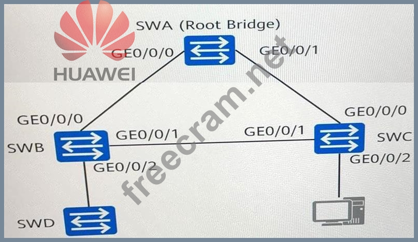 As shown in the figure, SWA, SWB, SWC, and SWD run the Rapid Spanning Tree Protocol (RSTP). Which of the following statements are true?