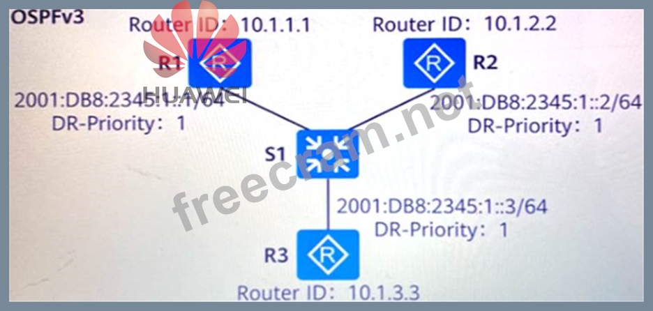 As shown in the figure, an engineer uses three routers to test IPv6 services. He wants to realize the interconnection of IPv6 networks by running OSPFv3.