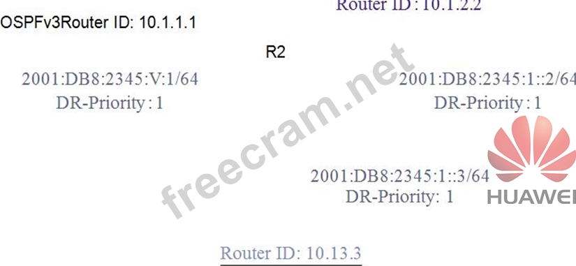 OSPFV2 is an IGP running on an IPv4 network; OSPFV3 is an IGPo running on an IPv6 network. The basic working mechanism of OSPFv3 is the same as that of OSPFV2, such as the election of DR and B, DR. As shown in the figure, an engineer uses 3 routers to test IPv6 services. He wants to realize the interconnection of IPv6 networks by running OSPFV3. Pass. Which of the following statements about the election of the network DR is correct?