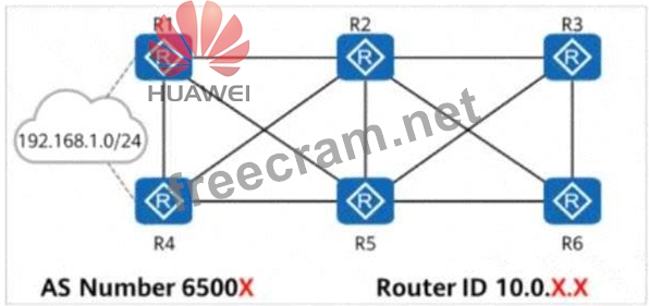 Comprehensive and Detailed In-Depth Explanation: Understanding the BGP Network Topology in the Question: * EBGP Peering * Each router forms EBGP peer relationships with directly connected neighbors. * This is a fully meshed topology, meaning each router exchanges BGP routes with its adjacent routers. * Routing Information for 192.168.1.0/24 * R1 and R4 import the static route 192.168.1.0/24 into BGP. * Since BGP prefers the shortest AS path, traffic to 192.168.1.0/24 will follow the shortest path to R1 or R4. Route Analysis for Each Statement: Statement A: R6 # R5 # R4 # (Correct) * R6 does not have a direct route to 192.168.1.0/24, so it must rely on BGP advertisements from its EBGP neighbors. * R5 learns the route to 192.168.1.0/24 from R4. * Therefore, R6 forwards traffic to R5, and then R5 sends it to R4. # Correct path: R6 # R5 # R4 Statement B: R5 # R4 # (Correct) * R5 is directly connected to R4, and since R4 advertises the 192.168.1.0/24 route via BGP, * R5 will forward traffic directly to R4 as the shortest AS path. # Correct path: R5 # R4 Statement C: R2 # R1 # (Correct) * R2 is directly connected to R1 and learns the 192.168.1.0/24 route from R1 via BGP. * Since R1 advertises the static route, R2 forwards traffic directly to R1. # Correct path: R2 # R1 Statement D: R3 # R2 # R1 # (Correct) * R3 is directly connected to R2 and learns the 192.168.1.0/24 route from R2 via BGP. * Since R2 prefers R1 as the shortest AS path to 192.168.1.0/24, * R3 will send traffic to R2, and R2 will send it to R1. # Correct path: R3 # R2 # R1 Final Conclusion: # A. The path for traffic from R6 to 192.168.1.0/24 is R6 # R5 # R4.# B. The path for traffic from R5 to 192.168.1.0/24 is R5 # R4.# C. The path for traffic from R2 to 192.168.1.0/24 is R2 # R1.# D. The path for traffic from R3 to 192.168.1.0/24 is R3 # R2 # R1. Thus, the correct answers are: A, B, C, D.