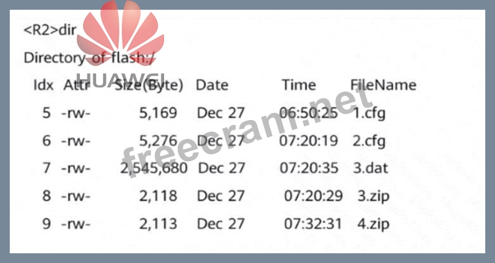 The figure shows the file information on R2. When a network engineer runs the dir | exclude 1 command to view the file information, which of the following files will be displayed?