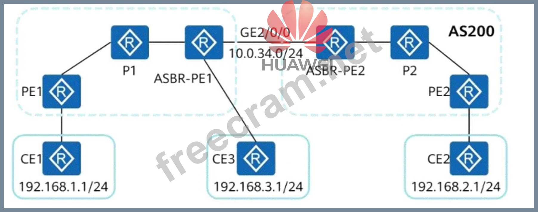 Understanding Inter-AS MPLS L3VPN Option C # MPLS L3VPN provides Layer 3 VPN services over an MPLS backbone by using BGP to exchange VPN routes.# Inter-AS MPLS L3VPN Option C (Carrier-to-Carrier Model) works as follows: * ASBRs (Autonomous System Boundary Routers) exchange VPNv4 routes using MP-BGP. * ASBRs do NOT store VPN routing tables. Instead, they advertise labeled IPv4 routes to enable inter-AS forwarding. How ASBR-PE2 Enables Inter-AS Communication? # VPNv4 Address Family (Answer A - Required) * Used to exchange MPLS VPN routes between PE routers. * MP-BGP (Multiprotocol BGP) exchanges VPNv4 prefixes between ASBR-PE1 and ASBR-PE2. # Unicast BGP Address Family (Answer D - Required) * Required to exchange IPv4 labeled routes between ASBRs. * Ensures MPLS label forwarding between AS100 and AS200. # BGP-LS Address Family (Answer B - Not Required) * BGP-LS (BGP Link-State) is used for SDN controllers to learn topology information. * It is not required for Inter-AS MPLS L3VPN. # VPN Instance Unicast Address Family (Answer C - Not Required) * This is used for PE-CE communication but is not required between ASBRs. Why is the Answer A, D? # VPNv4 routes enable inter-AS VPN communication.# IPv4 unicast routes are required for ASBR-PE2 to forward packets across AS boundaries. Real-World Application: * Service Provider Networks: Used in carrier-to-carrier MPLS VPN deployments. * Enterprise WAN Interconnection: Enables multi-AS MPLS VPN connectivity for large enterprises. # Reference: Huawei HCIE-Datacom Guide - Inter-AS MPLS L3VPN Option C (Carrier-to-Carrier Model)