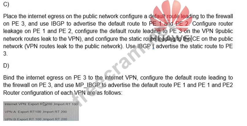 Question 43: Configure VRFs and relevant policies on a PE as follows: (Ex...