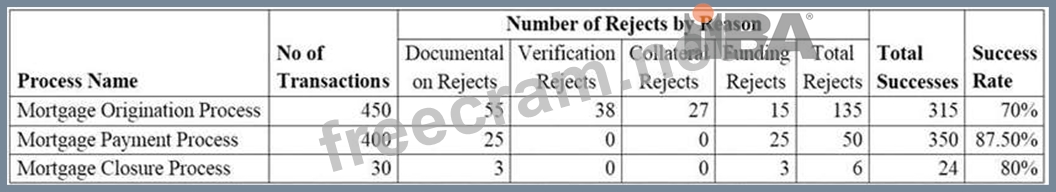 *Each business process has a certain number of rejects and the reasons for rejection include documentation, verification, collateral, and funding. Funding rejects occur when the bank's customers have failed to make payment of their mortgage processing fee or mortgage closure payment.
