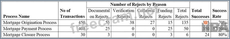 *Each business process has a certain number of rejects and the reasons for rejection include documentation, verification, collateral, and funding. Funding rejects occur when the bank's customers have failed to make payment of their mortgage processing fee or mortgage closure payment.