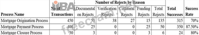 * Each business process has a certain number of rejects and the reasons for rejection include documentation, verification, collateral, and funding. Funding rejects occur when the bank's customers have failed to make payment of their mortgage processing fee or mortgage closure payment.