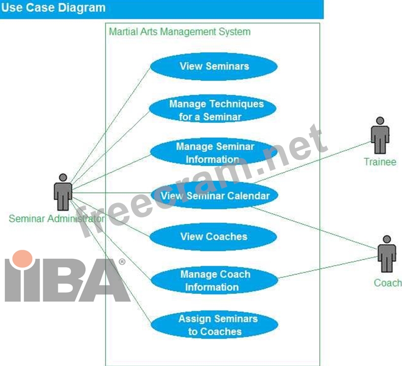 * The seminar administrator in the martial arts organization manages the seminars (including seminar content), assigns seminars to coaches, and defines the seminar schedule.