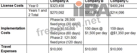 After reviewing the received vendor responses the project team shortlists the candidates to 3 and the BA structures the received information as follows: