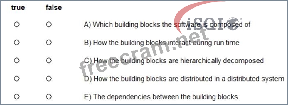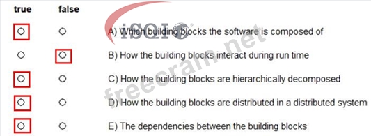 Which information is presented in the building-block view? Rate the alternatives below as either true or false. (Assign all answers.)