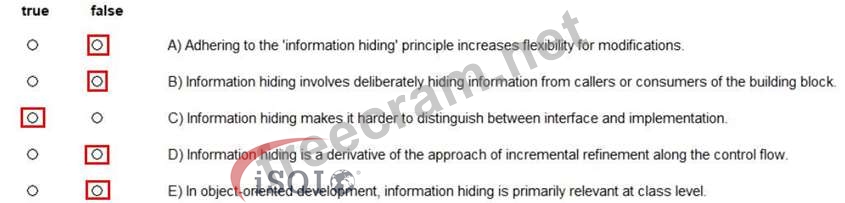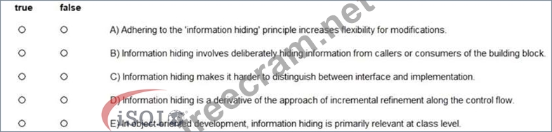 Which of the following statements regarding the design principle 'information hiding' are true and which are false? (Assign all answers.)