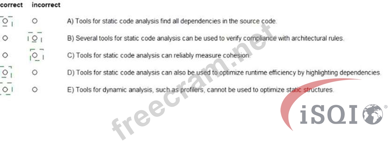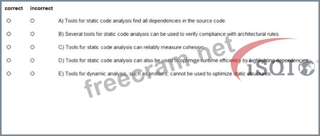 You are the software architecture on a large development project and are entrusted with the task of building a toll chain for continuous architecture evaluation and analysis. Which of the following statements regarding this selection are correct/ incorrect? K-Question .Assign all answer